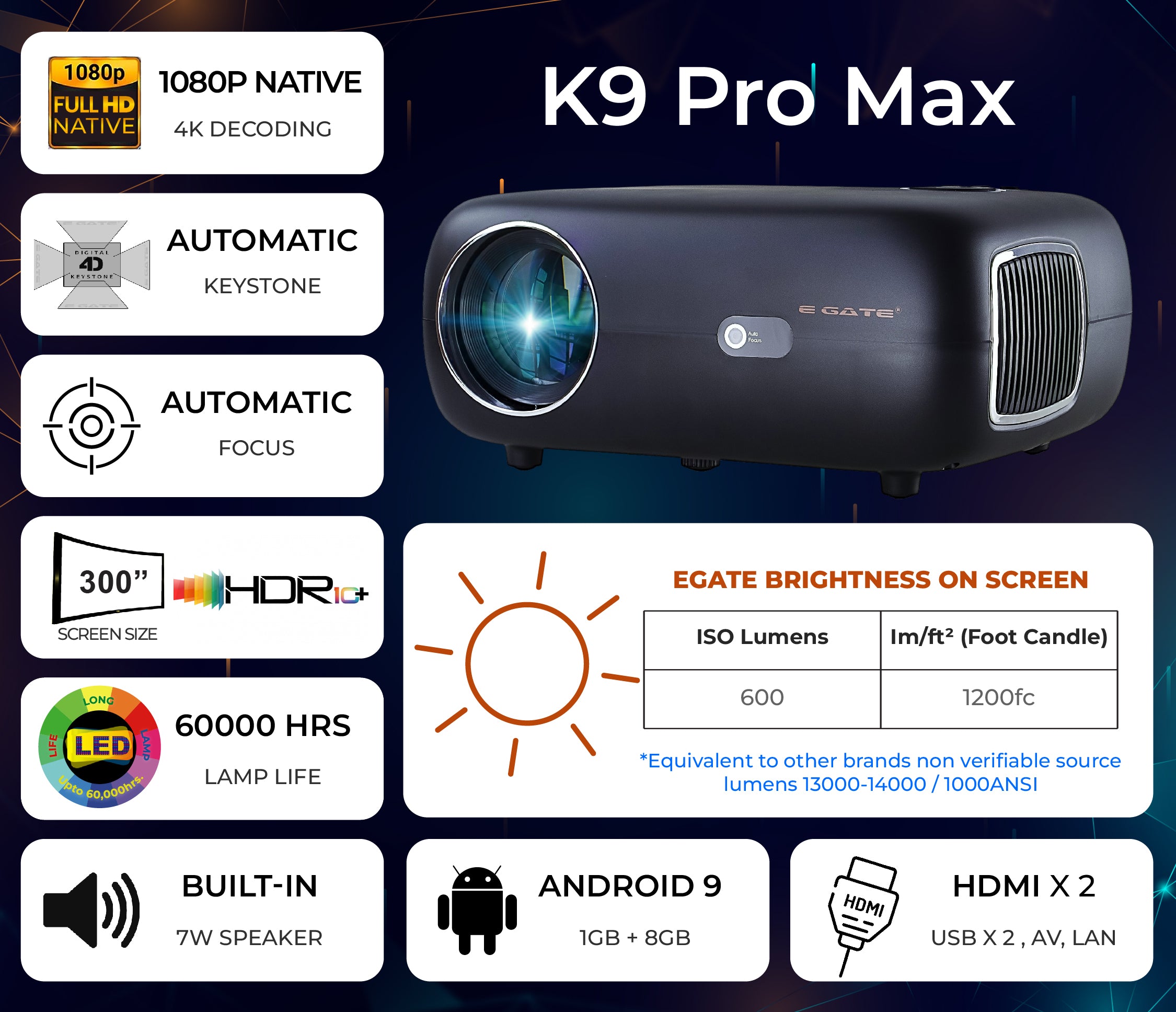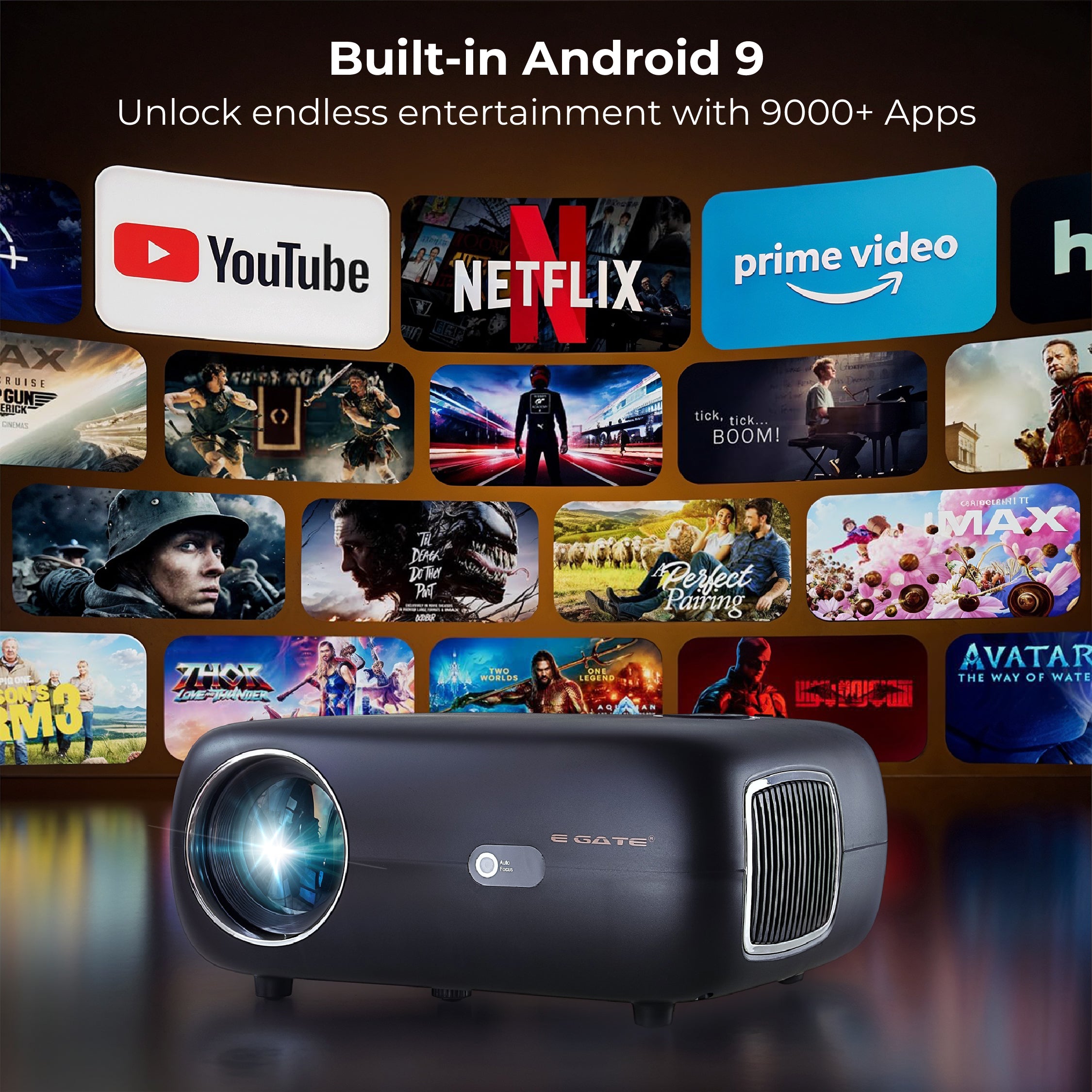 ই গেট কে৯ প্রো-ম্যাক্স (আপগ্রেডেড) অটোমেটিক প্রজেক্টর, ১৩৫০০ লুমেন এবং ৭৫০এফসি | ফুল এইচডি ১০৮০পি নেটিভ | অটো ফোকাস + অটো কিস্টোন | ৫৩৪ সেমি ম্যাক্স স্ক্রিন | এইচডিএমআই, ডুয়াল ওয়াইফাই এবং বিটি | অ্যান্ড্রয়েড, নেটফ্লিক্স, প্রাইম