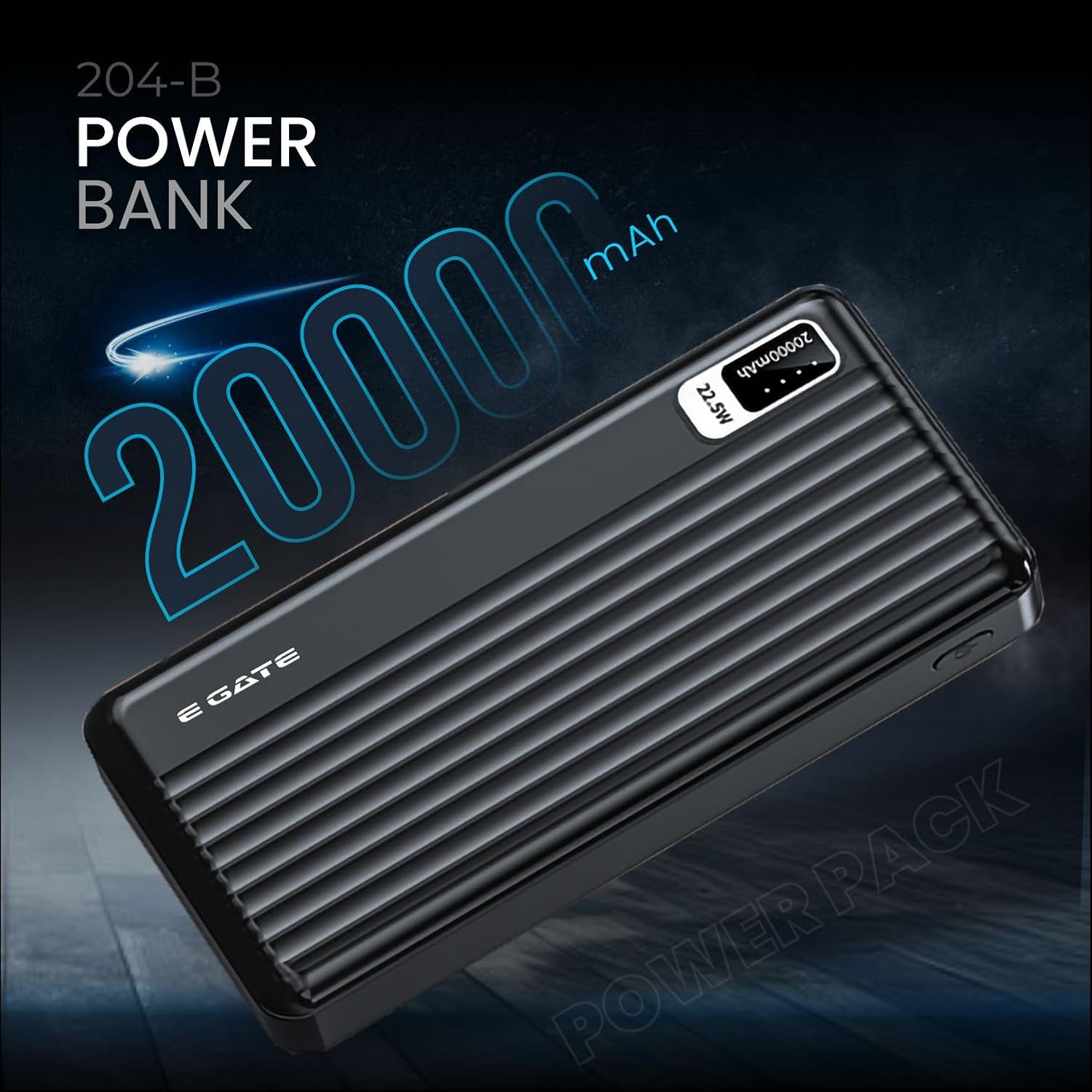 E GATE 204B Powerbank | 20000mAh | 22.5W Fast Charging | QC + PD | Dual Input Port : Type C & Micro USB | Triple Output Port : 2X USB & Type C | LED Indicator| for All iPhone & Android (Black)