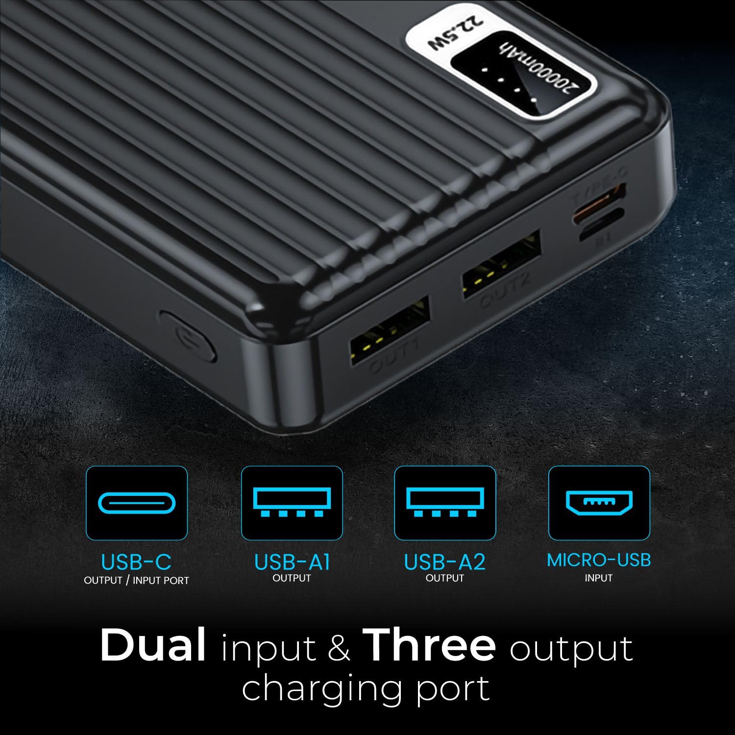 Ultra High Capacity with 20,000 mAh : Never run out of battery with high-capacity 20,000 mAh power...