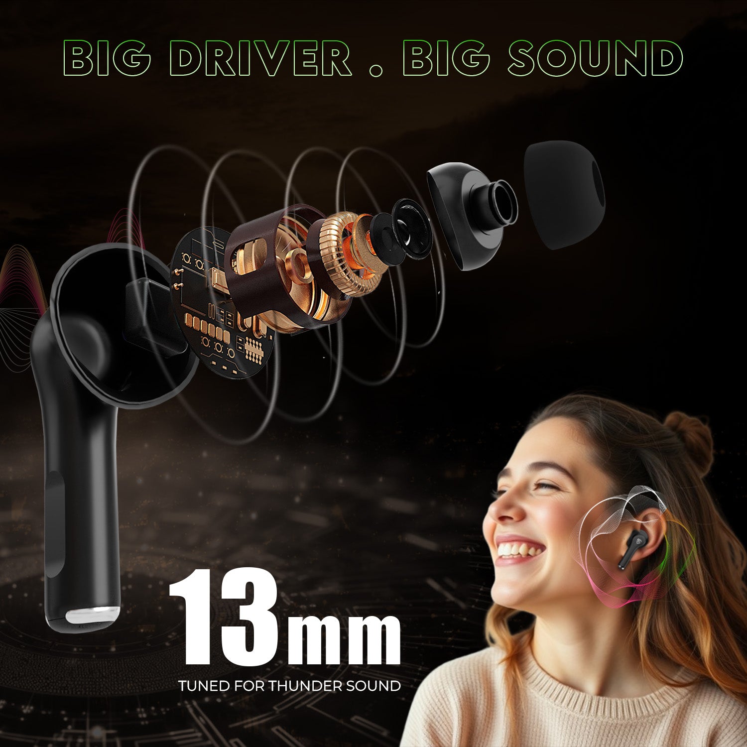 • 13mm Dynamic Driver - 13mm rich bass dynamic driver brings incredible performance with awesome sound quality having low distortion and clear high tones.