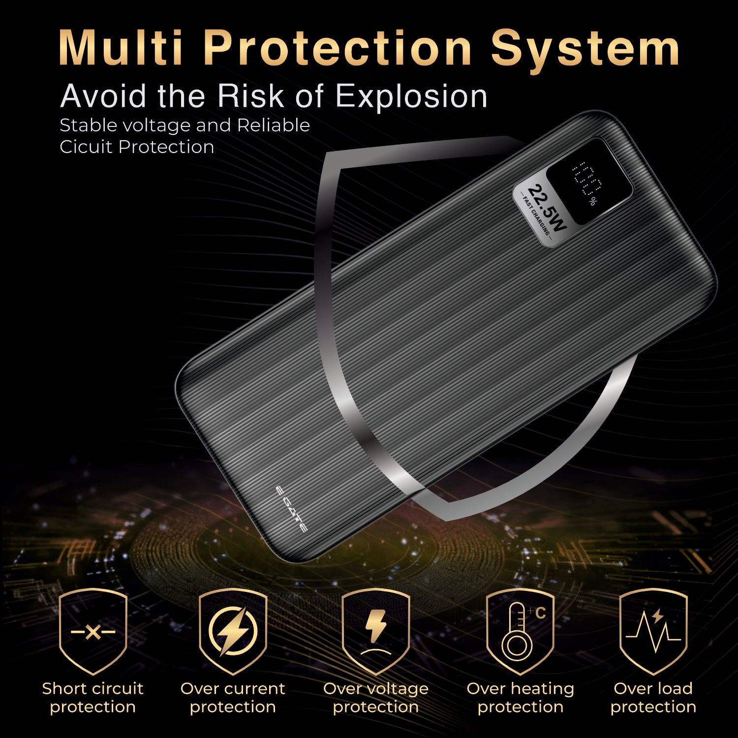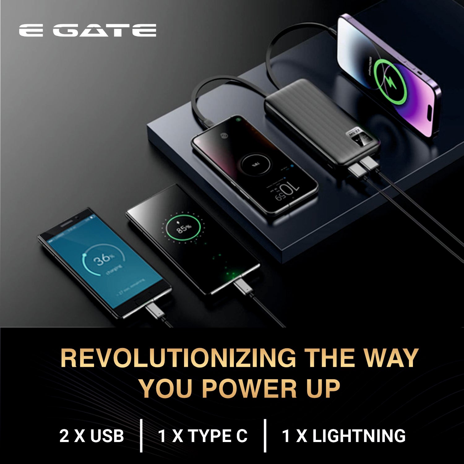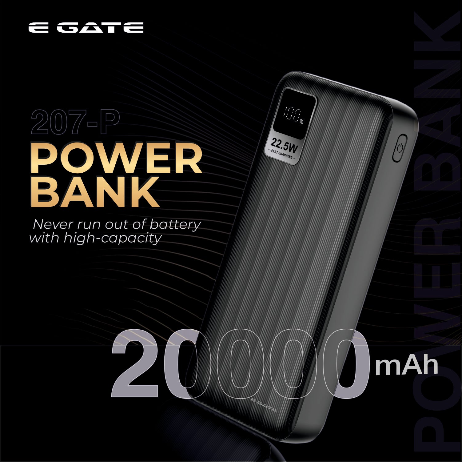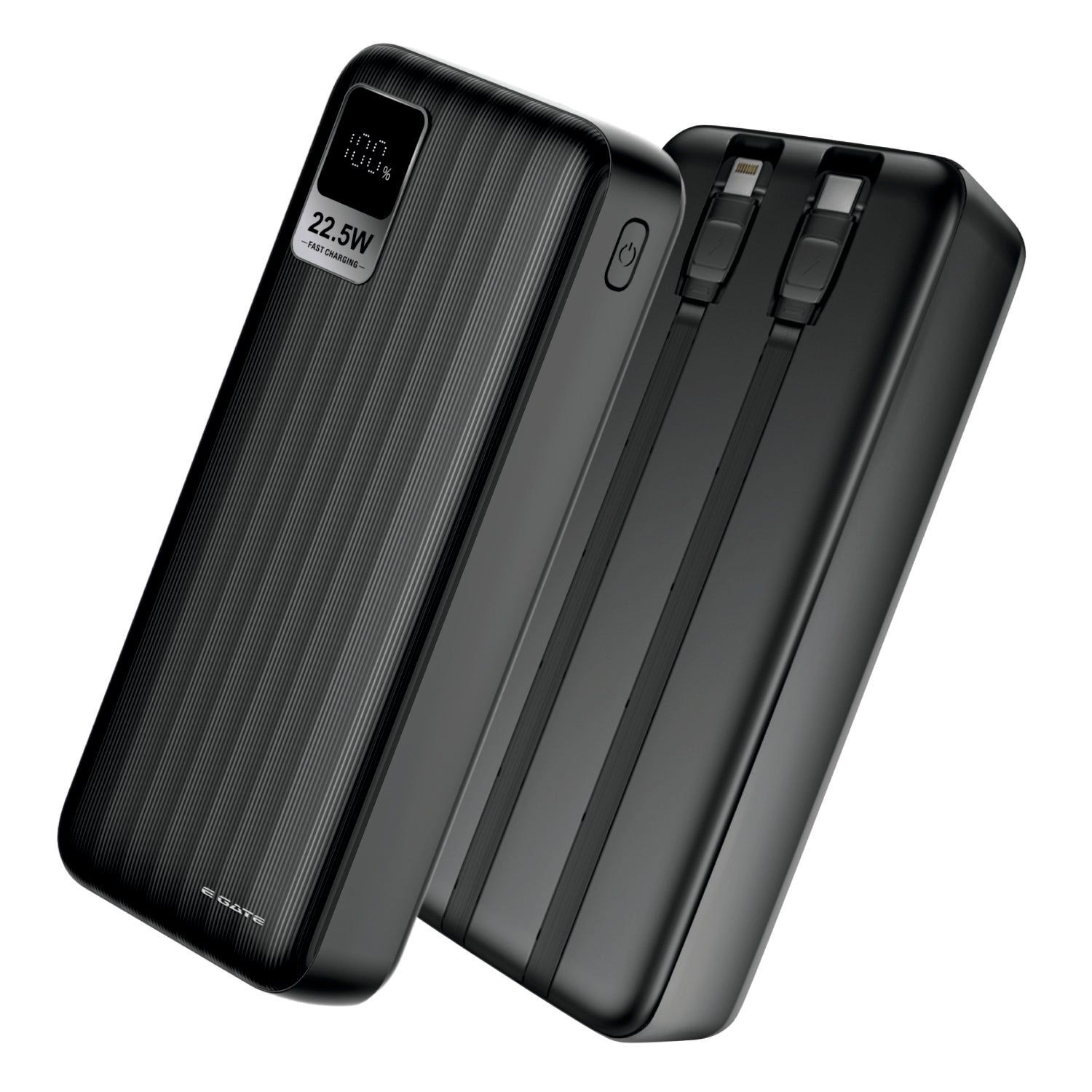 E Gate 207 B Power Bank 20000mah fast charging | Built-in Lightening & Type C Cable for iPhone, Android, TWS etc| Multi Device 22.5W Power Bank 4-in-1 Charger |USB X 2, Type C X 1 & Lightening (Black)