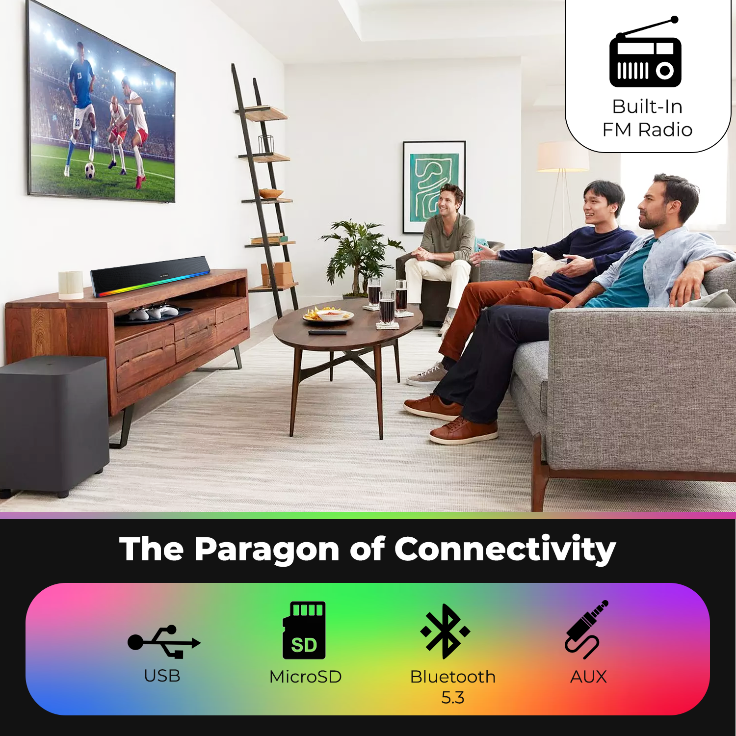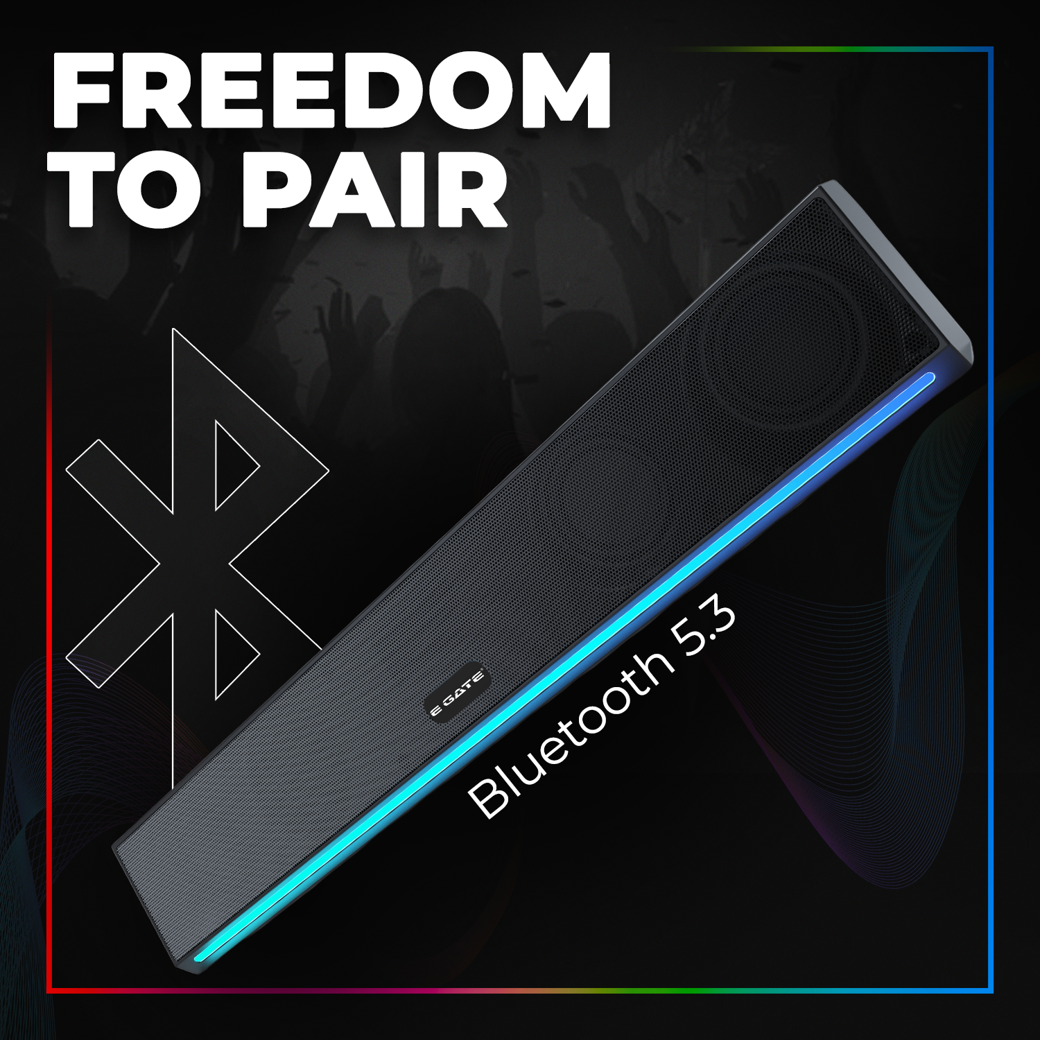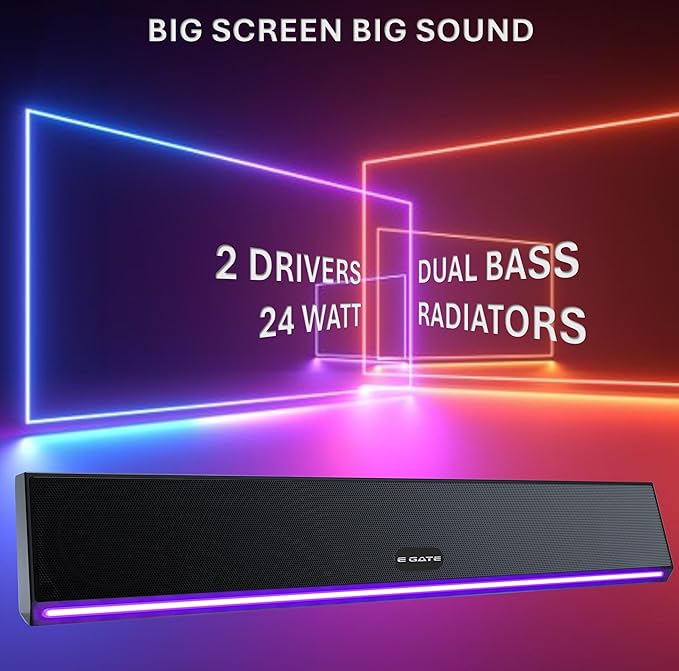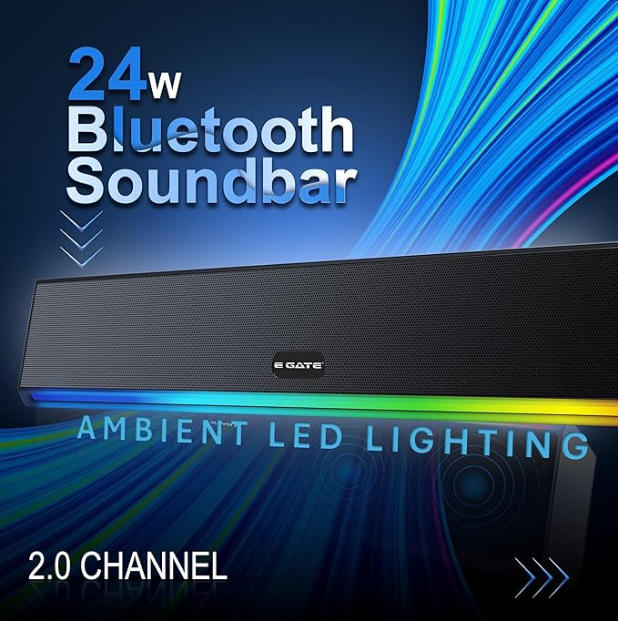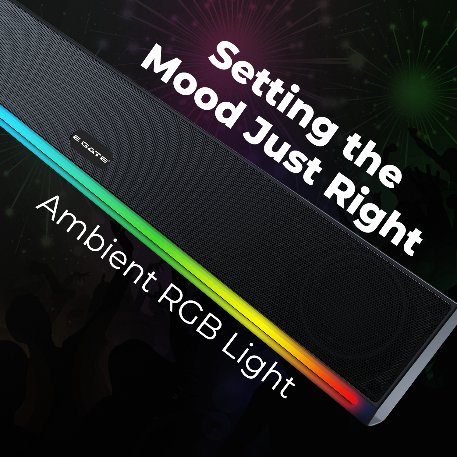 E GATE C222 | 24W Soundbar Bluetooth Speaker, Dual Drivers + Dual Passive Radiators for 2X Bass, Ambient RGB Light, Upto 24 Hrs Backup, Call Function, TWS, AUX, USB, mSD and FM - eGate Sound bar