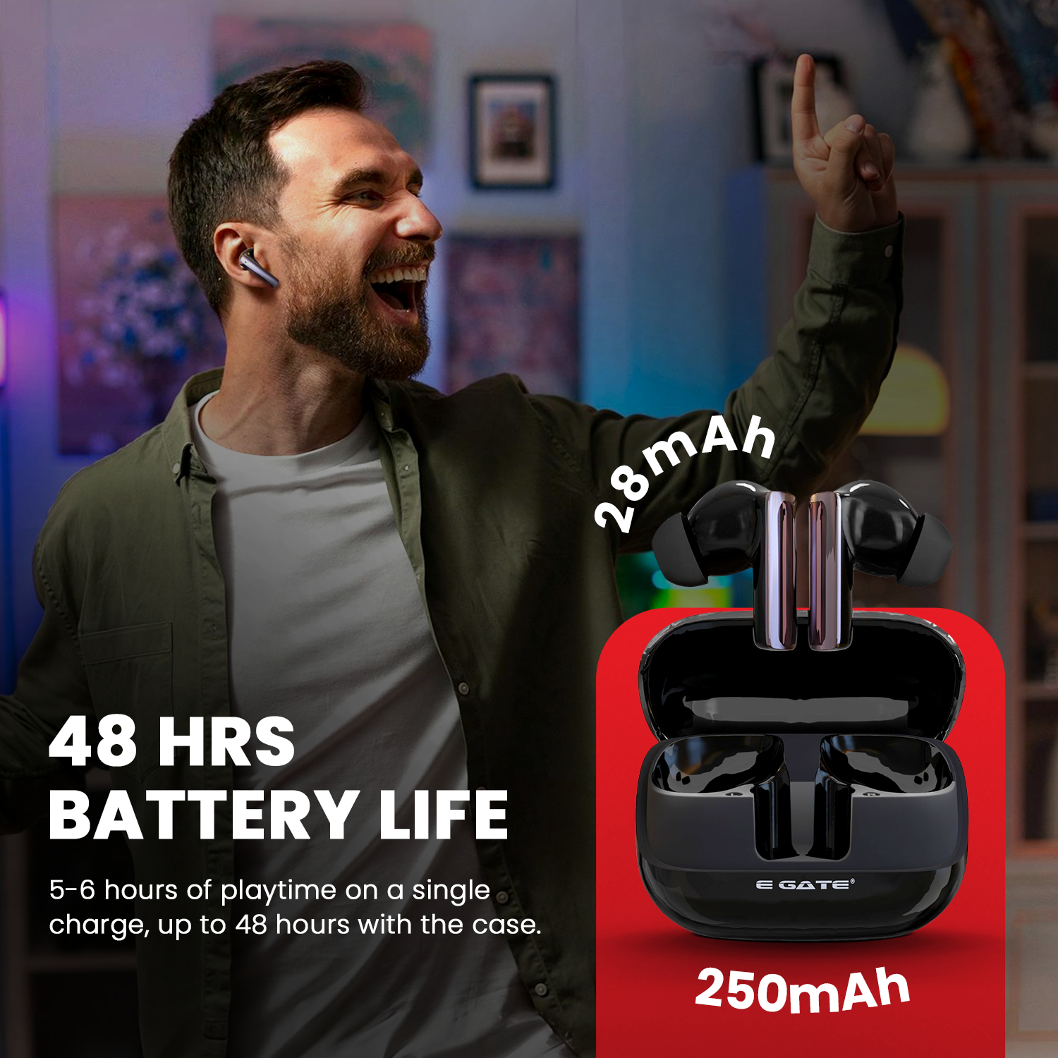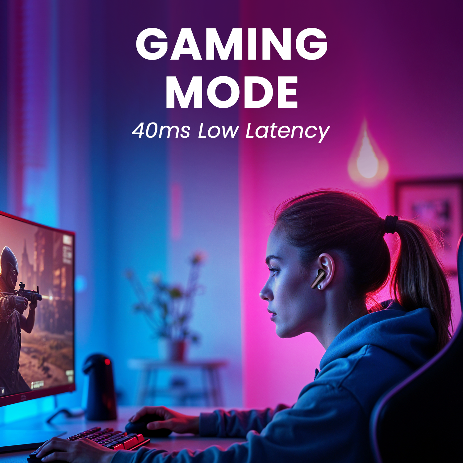 E GATE E30 Gaming Earbuds with 48 Hrs Playtime, Quad Mic ENC,Touch Control, Low Latency, BT v5.3 Bluetooth Ear Buds with Voice Assistant, 10mm Bass Dynamic Driver, Water Resitant Wireless Earphones