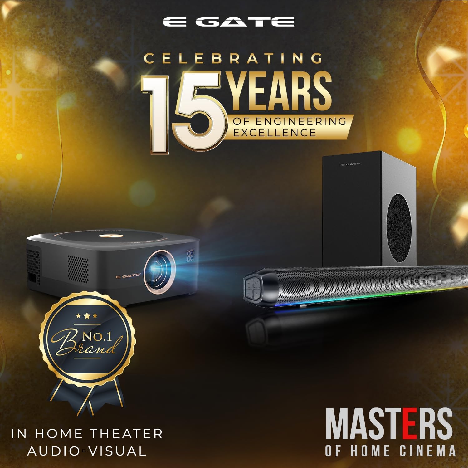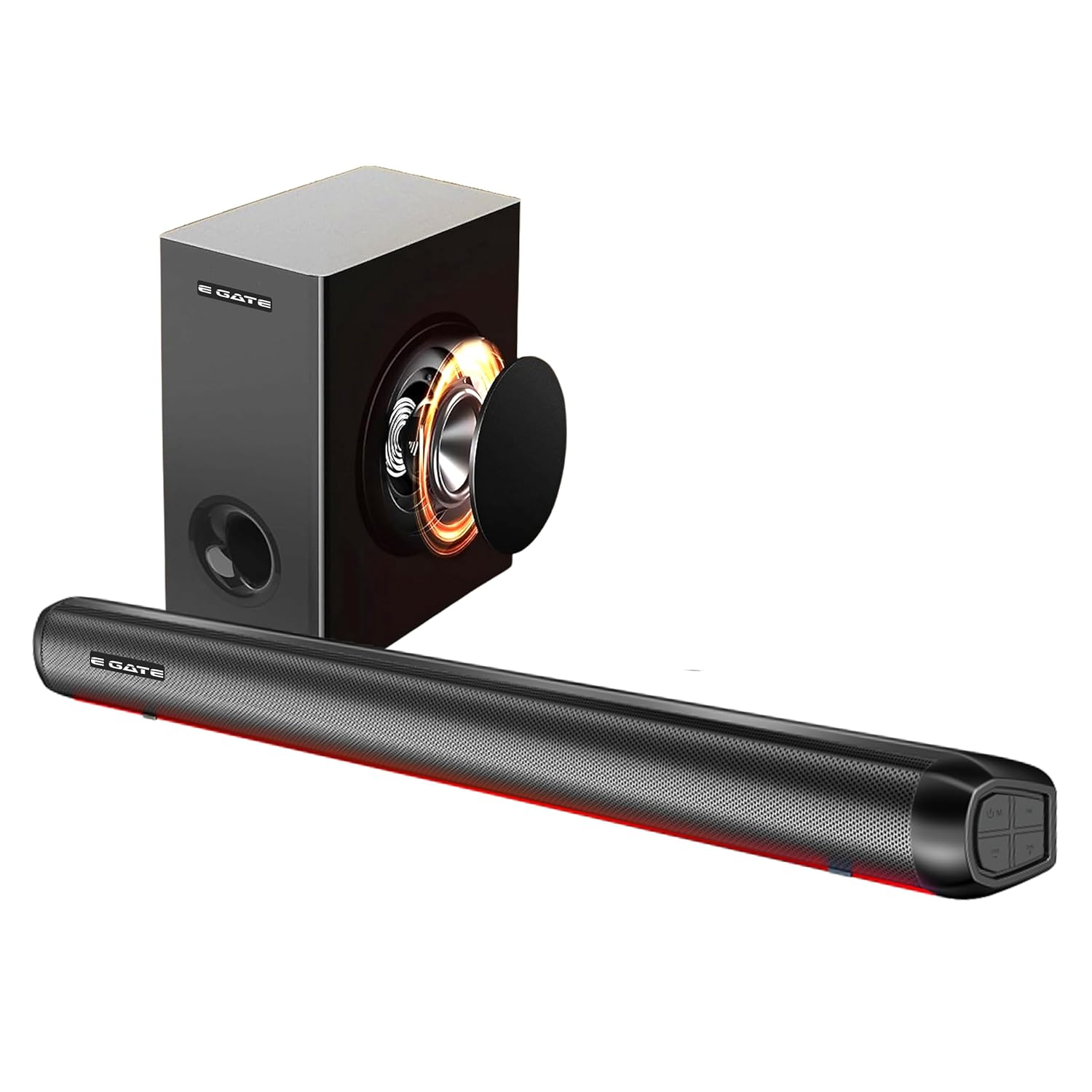 E GATE Enigma 306 | 210W 2.1 Surround Home Theatre TV Sound Bar, Wired 6.5" Subwoofer for Deep Bass, 3EQ Modes, BT 5.3, USB, Optical, AUX & TWS Connectivity, TV ARC, Ambient LED Light | eGate