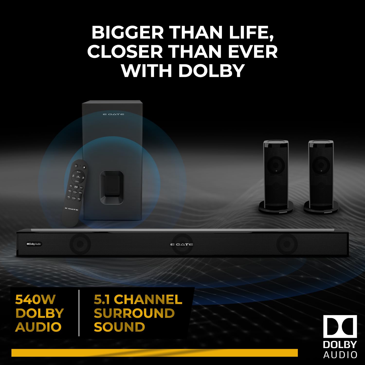 E GATE Phantom 630D Dolby Audio 540W Soundbar, Home Theatre 5.1 Channel Sound bar for TV with Wired Subwoofer (16.5cm) & 2 Satellite Speakers, 3 EQ Mode, Bluetooth 5.3, HDMI-ARC, Optica, USB | eGate