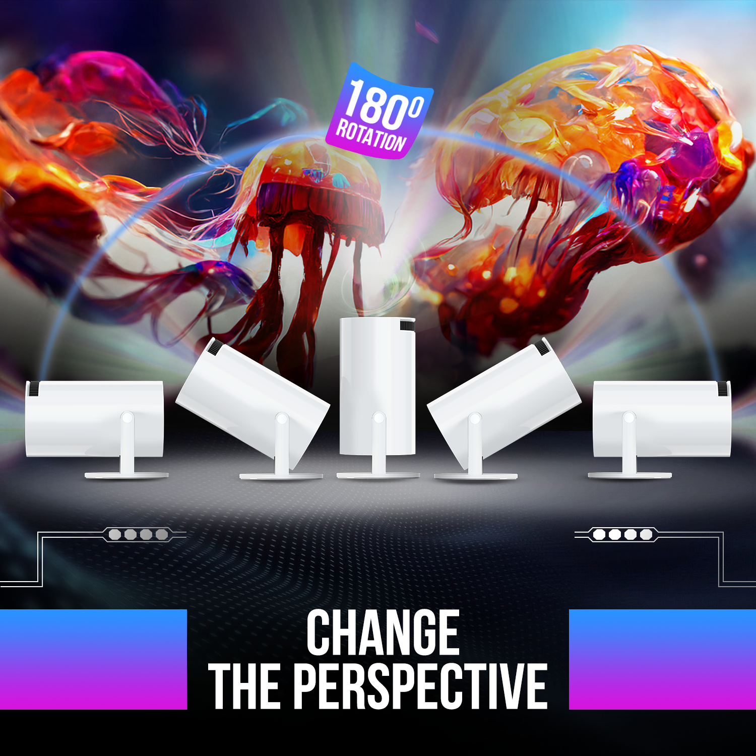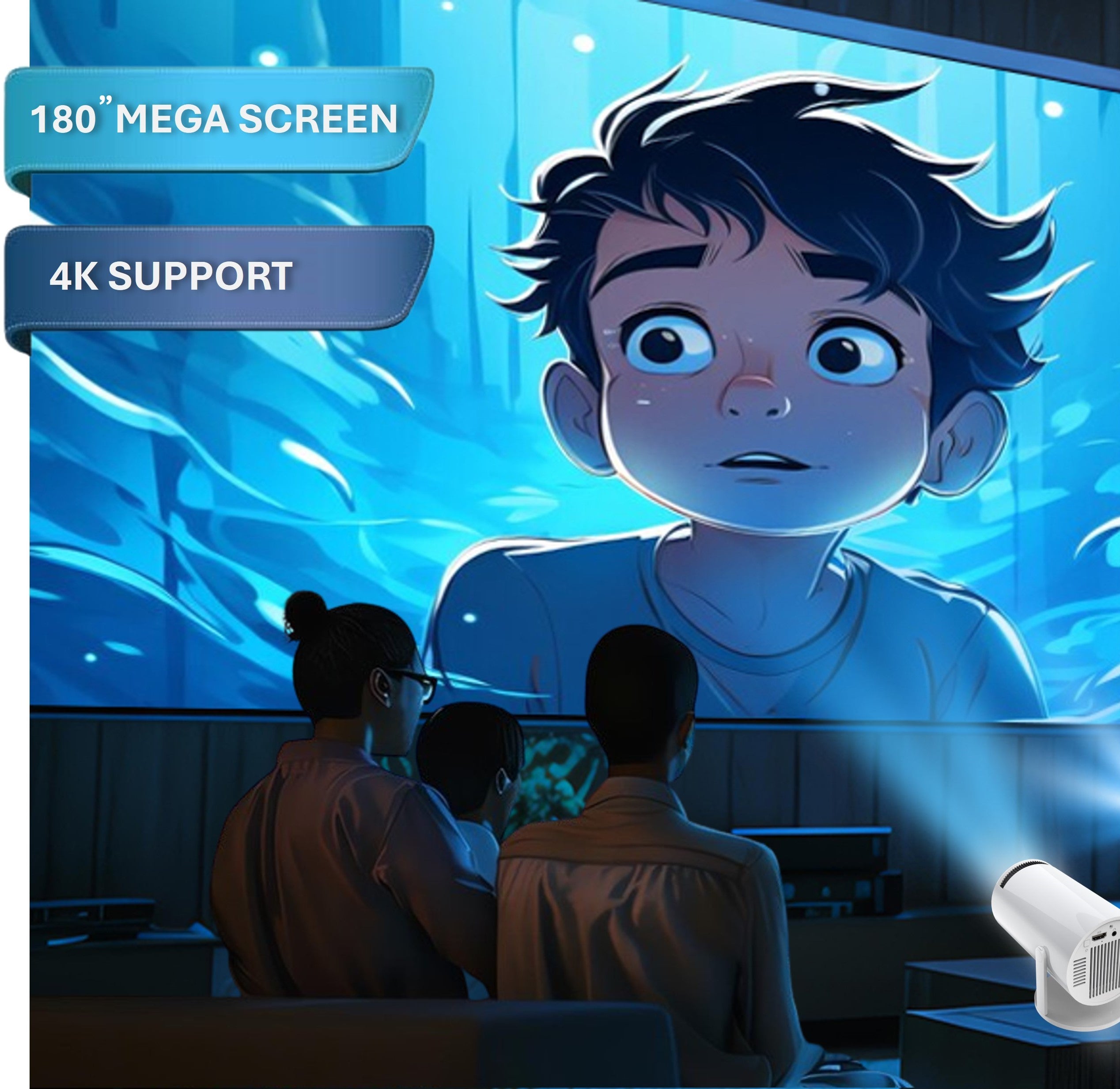 EGate Atom 2X Smart Projector, 13.0 Android embeded on 950S Chip, 200 ISO, 1080p & 4K Support, Automatic & 4D Keystone with Netflix, Prime, WiFi & BT, Screen Mirroring, 720P Native, 1GB-8GB,White